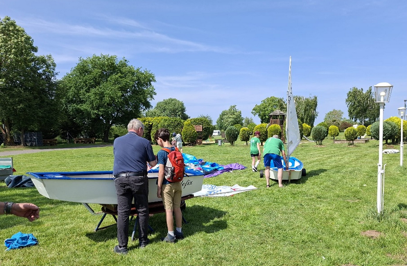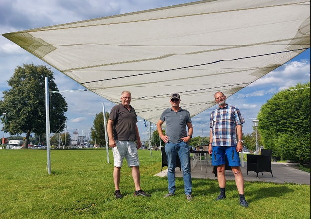 Ich hatte im Juni-Newsletter bereits darüber berichtet, dass auf der Wiese beim Bootshaus für Schatten gesorgt wird. Danke an alle fleißigen Hände, die hier unterstützt haben. Das Sonnensegel ist angebracht und spendet ab sofort Schatten.