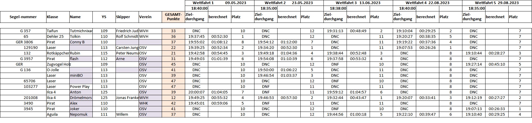 Segelbundesliga statt. Der WVH hat den 12. Platz belegt. Glückwunsch an das Team, bestehend aus Jan Seekamp, Björn Schütte, Max Billerbeck und Bosse Schröder. Im Opti-Segeln gab es zwei Veranstaltungen. Die erste fand in Helgoland mit allen 6 Opti-A-Kindern des WVH statt. Den ersten Platz hat Jonny Seekamp belegt, auf Platz 10 folgte seine Schwester Nani Seekamp, auf Platz 14 Jonas Tschentscher, Platz 27 Julian Mall, Platz 29 Greta Bergenthal und auf Platz 56 Elisa Franke. Die zweite Veranstaltung war die internationale Deutsche Jugendmeisterschaft am Dümmer vom 29.07.-04.08.23. Es waren fünf WVH-Teilnehmer/-innen von insgesamt 165