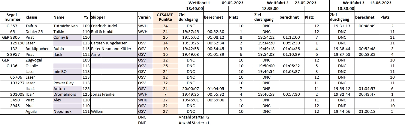 Die Feierabendregatta am 4. Juli muss leider abgesagt werden – es steht kein Wettfahrtleiter für die Regatta zur Verfügung.